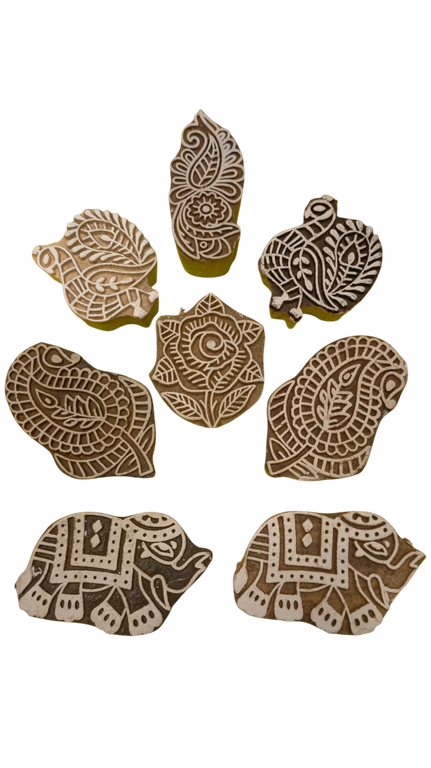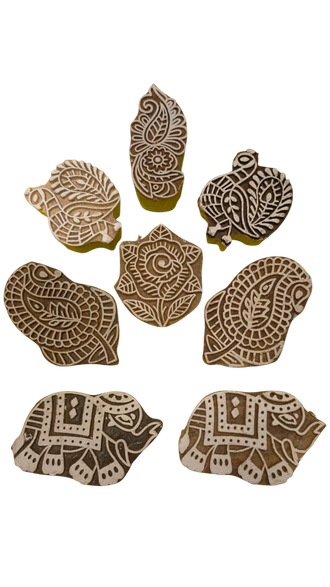 Удобные печать-штампы из дерева с традиционными индийскими узорами.